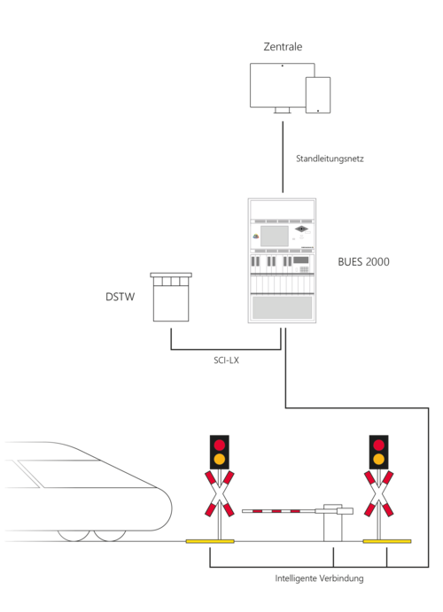 Mit 150 Jahren Erfahrung in der Eisenbahnsignaltechnik ist die digitale Bahnübergangssicherung BUES 2000 mit intelligenten Feldkomponenten wie